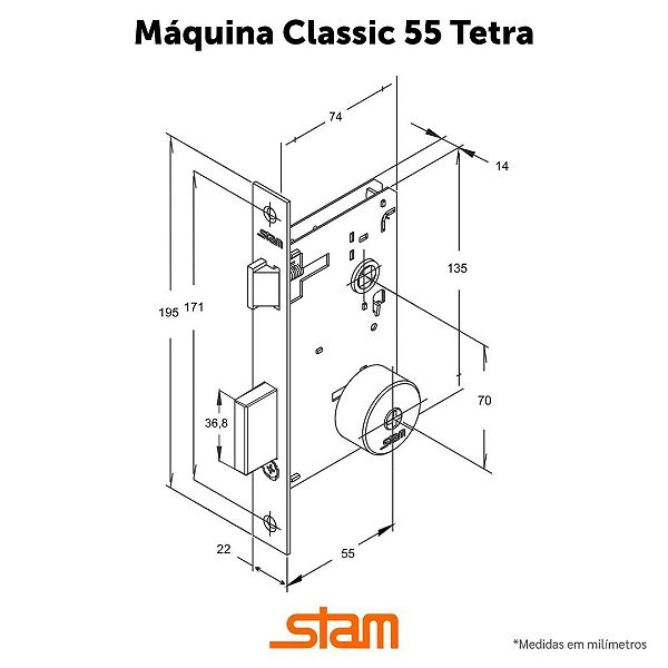 • Modelo: 1600/09 da linha Potenza 1600, também referida como fechadura tetra-chave externa com máquina de 55 mm